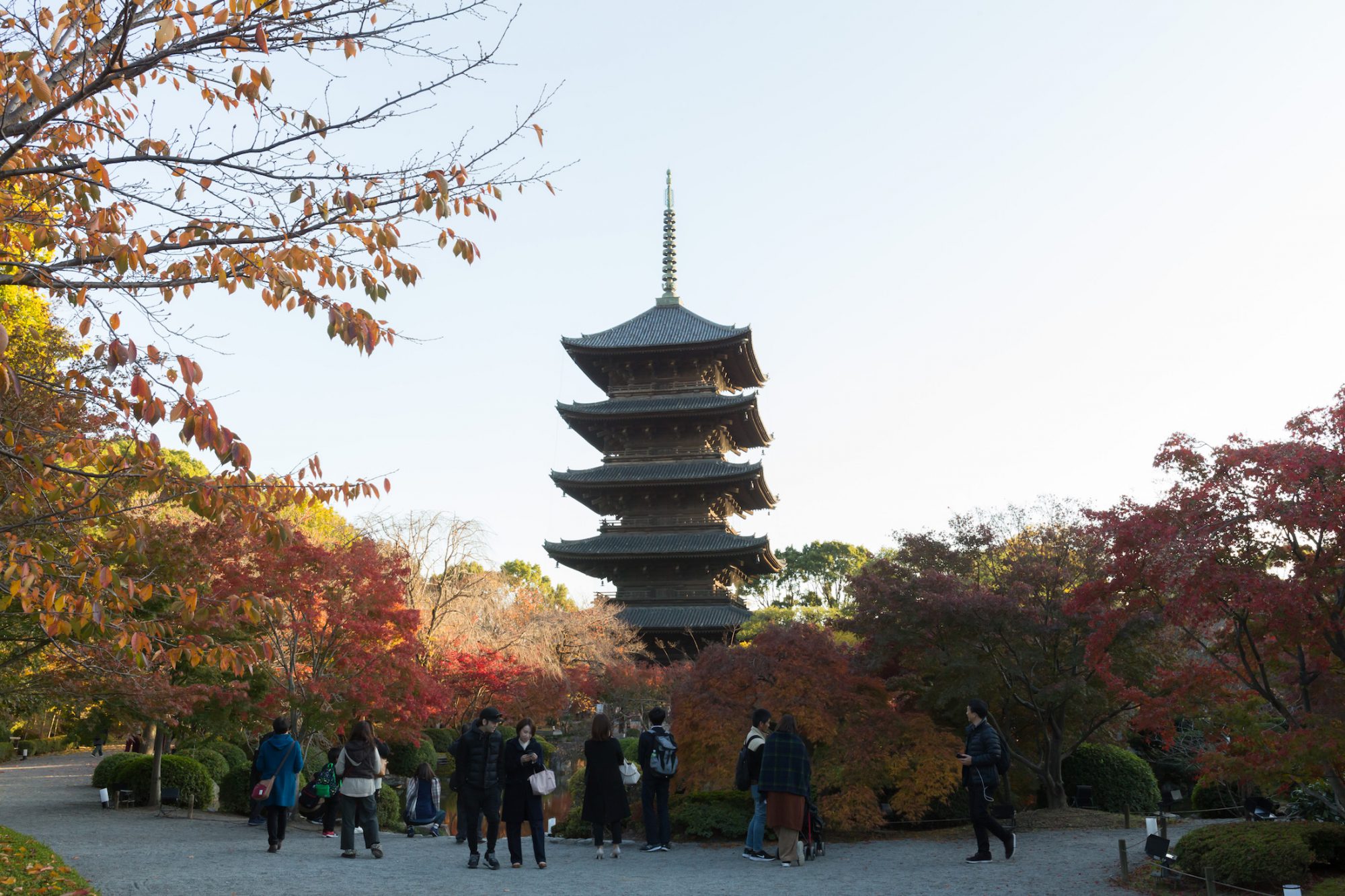 そしてヘリクルーズの後は世界遺産・東寺へ。常は非公開の国宝五重塔や小川治兵衛が手がけた庭園の紅葉を案内つ きで特別拝観。
